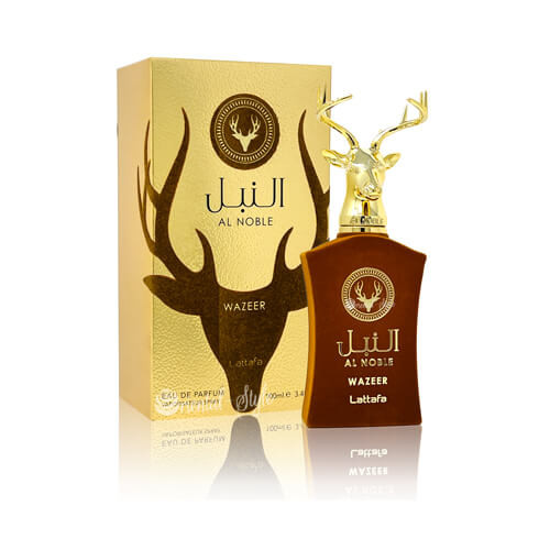 ادوپرفیوم النبل سفیر (al Noble Wazeer) یک عطر گرم چوبی و میوه ای است که برای هر دو جنسیت مناسب است. این عطر توسط برند لطافه به بازار عرضه شده و با نام برند خودش را به افتخار میبرد. خیره کننده با طراحی یک کله گوزن طلایی، شما را به سفری فوقالعاده به دل طبیعت و عمق احساسات دعوت میکند.