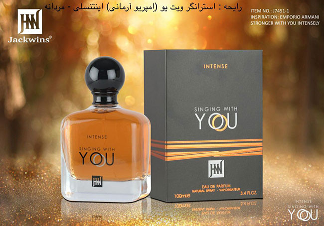 عطر ادکلن مردانه جورجیو آرمانی امپریو آرمانی استرانگر ویت یو اینتنسلی جکوینز (Jackwins Singing With You for man) حجم 100 میل رایحه گرم ، شیرین و کمی تلخ . این محصول نمونه شرکتی ادکلن جورجیو آرمانی امپریو آرمانی استرانگر ویت یو اینتنسلی اورجینال Giorgio Armani Emporio Armani Stronger With You Intensely می باشد.