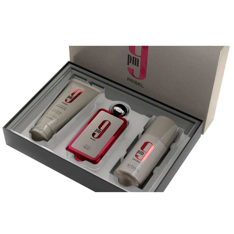ست هدیه 9 پیام ربل افنان (9PM Rebel Gift Set Afnan) انتخابی خاص برای افرادیست که به رایحههای مدرن، میوهای و در عین حال چوبی علاقه دارند. این ست یونیسکس با طبع معتدل و ساختاری متعادل، بهگونهای طراحی شده که در تمام فصول سال قابل استفاده باشد و هم برای خانمها و هم آقایان جذابیت داشته باشد.