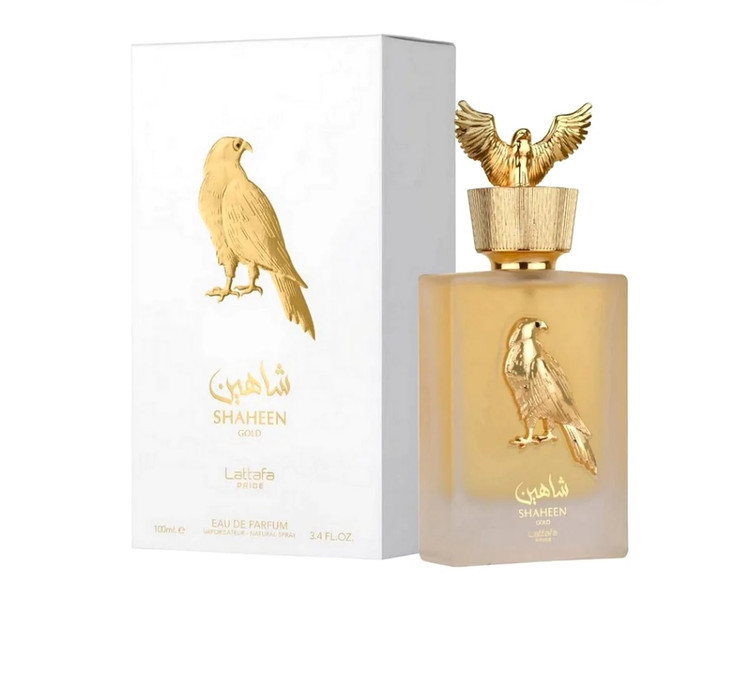 ادکلن لطافه شاهین گلد طلایی Lattafa Shaheen Gold، یکی از محصولات متمایز و لوکس برند لطافه Lattafa است. این ادکلن با طراحی شیشه و جعبهای بسیار خاص و لاکچری تولید شده است. جعبه ادکلن با رنگ سفید طراحی شده است، در حالی که شیشه ادکلن با رنگ طلایی و زرد ظاهر میشود.